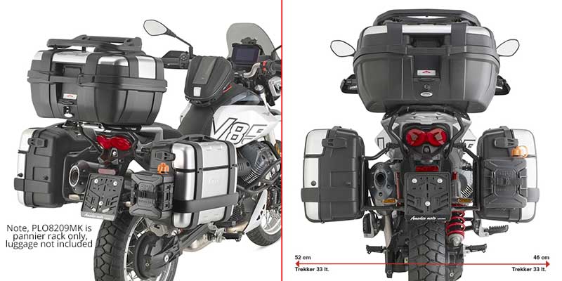 - PLO_MK are Givi's new One-Fit system, a rack preconfigured for Monokey, but can be adapted to take Trekker Outback panniers