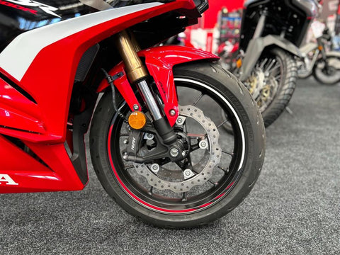 Responsive and economical performance from the 471cc fuel injected twin-cylinder engine. Added safety with Front and rear disc brakes, combined with standard Anti-lock Braking System (ABS). Premium handling supplied by the 41mm Showa inverted forks and rear Pro-Link suspension with adjustable pre-load. Aerodynamic & Aggressively-styled fully-faired supersport machine!
