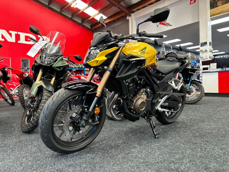 Explore all the city has to offer. And do it in style. The CB500F mixes naked-bike agility with a streetfighter attitude. Showa Separate Function Fork-Big Piston (SFF-BP) USD front suspension and dual front discs take handling and braking to the next level, while the LAMS compatible twin-cylinder engine provides performance that new and experienced riders can enjoy. Sharp new graphics are the perfect finishing touch to the CB500F.