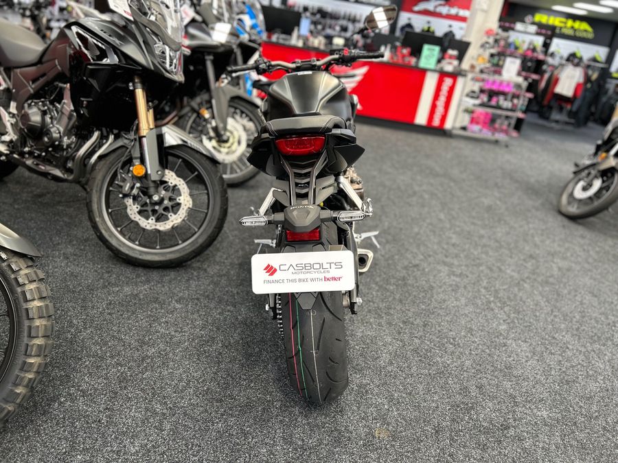 LAMS Approved inline-four! Few motorcycles can claim to be exceptional at all things, but the Honda CB650R is one bike that stands out from the rest. It starts with the inline-four engine, oozing with power and begging to be revved. Then there’s the seating position, placing you more upright for long-distance comfort. Perhaps the best part is the ‘Neo Sport’ styling, offering a modern take on the naked sportbike with waterfall-style headers, wide handlebars and LED lighting front and back and ABS as standard. The result is a naked middleweight designed for maximum pride and pleasure of ownership. PREMIUM HANDLING - 41mm USD front forks, Honda Selectable Torque Control and ABS LIGHTWEIGHT AND NIMBLE - 202kg and 810mm seat height UNIQUE MINIMALISTIC STYLING - ‘Neo Sports Café’ design RESPONSIVE AND ECONOMICAL - 649cc, DOHC 16-valve engine with PGM-FI Extremely competitive finance and insurance packages available with flexible deposits or no deposit to approved purchasers. Transport is available to anywhere in NZ. We also have a fully equipped service department. Casbolts Motorcycles are New Zealand's oldest Honda motorcycle dealer and the South Islands only Authorised Ducati Dealer. Established in 1932, we have been selling and servicing Honda since 1962 and Ducati since 2002. Call in to view the largest range of new and used Honda and Ducati road bikes in the South Island. (576/0) |