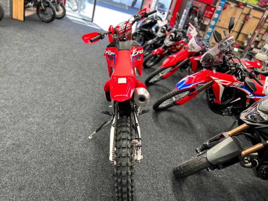 Like the pure-motocross CRF250R, the RX features a double-overhead-cam engine, fuel injection, an all-aluminum chassis, and state-of-the-art Showa suspension. Anyplace where power, precision, light weight and nimble handling is at a premium, this is the bike you’ll want to be riding.