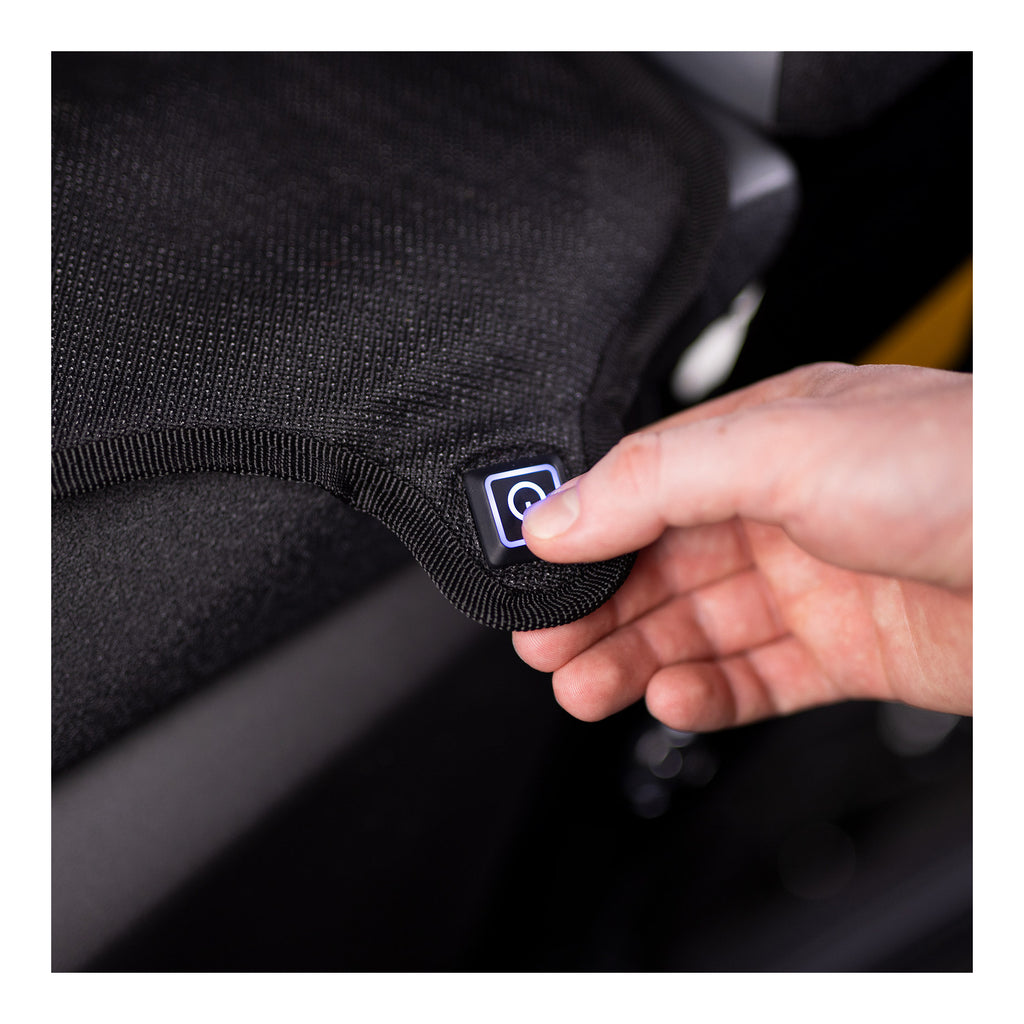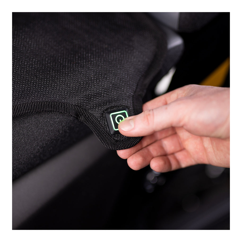 - Three heat levels displayed through the RGB LED Power button: Red = 100%, Blue = 75%. Green = 50%.