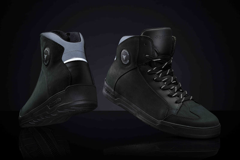 New from Italian boot manufacturer Stylmartin, the Matt sneaker is going to be true staple for urban riding. Made of fine, full-grain leather, this understated black sneaker has a soft suede finish. It’s waterproof and breathable, for comfortable wearing all day. And with a special grip sole, internal protection and CE certification, they’re purpose made for the road. As an added bonus, silver-accent laces and a reflective heel collar provide increased night visibility. Made in Europe