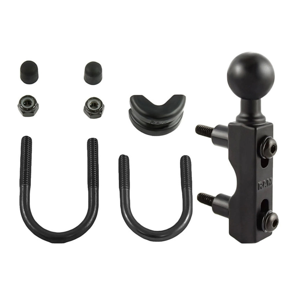 The RAM-B-309-7U combination handlebar and brake/clutch reservoir base provides the ultimate flexibility for mounting to your motorcycle. Attach the base to either your handlebar or brake/clutch, and achieve near-infinite adjustability and ideal viewing angles for your phone, GPS unit, or action camera. The zinc-coated metal U-bolt accommodates rails ranging from 0.5" to 1.25" in diameter. Hardware included.