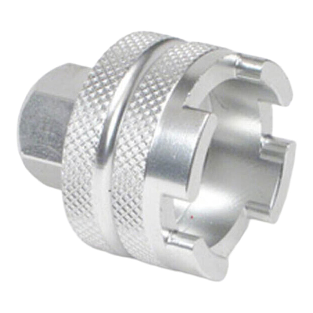 The Whites Compression Bolt Removal Tool is the ideal tool for removing and installing the compression valve assembly from the fork cap. A 17mm hex head enables you to properly torque the compression valve assembly to the manufacturers specification during installation. Constructed using lightweight and durable 6061-T6 aluminium.