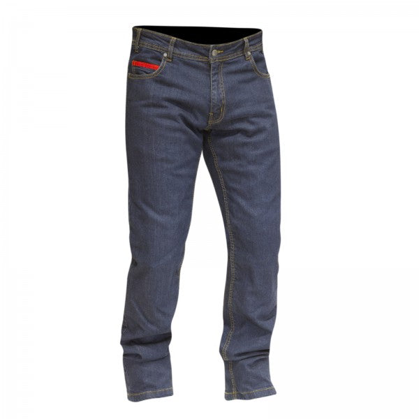 Produced by Merlin under their Route One brand, the Blake mens jean is made of a stretch denim for maximum comfort and flexibility while riding, with quality YKK® zips used throughout. This jean also has a protective lining to impact areas made of 100% DuPont™ KEVLAR® Fibre Twill and comes ready fitted with CE approved knee pads.