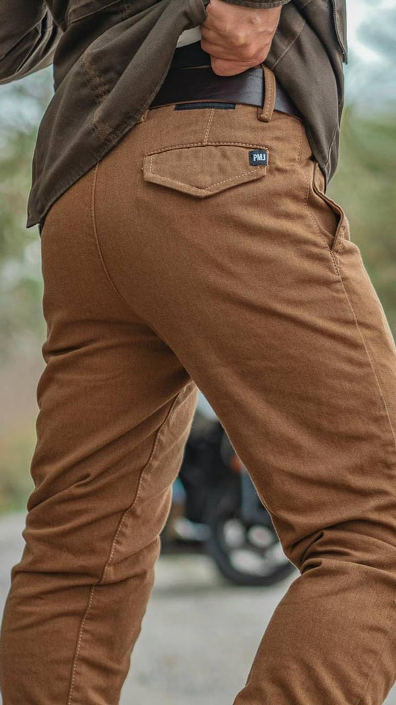 Looking for riding pants that are smarter than a pair of denim jeans? PMJ's Italian-made Sunset chinos seamlessly blend style, comfort and protection.These single-layer trousers are made from Ultracor, a tough cotton and Cordura mix fabric, making these super comfortable to wear all day but with a strong AA rating for riding safety.
