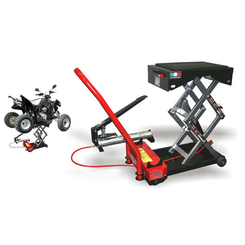 The smallest lift in the Bike Lifts range, the HQL 400 is designed for lifting Quads and ATV's in compact working areas. It may be small, but can lift up to 400 kgs allowing you to work safely on each side. It is equipped with a quick-relase handle and wheels for easy movement around the workshop.